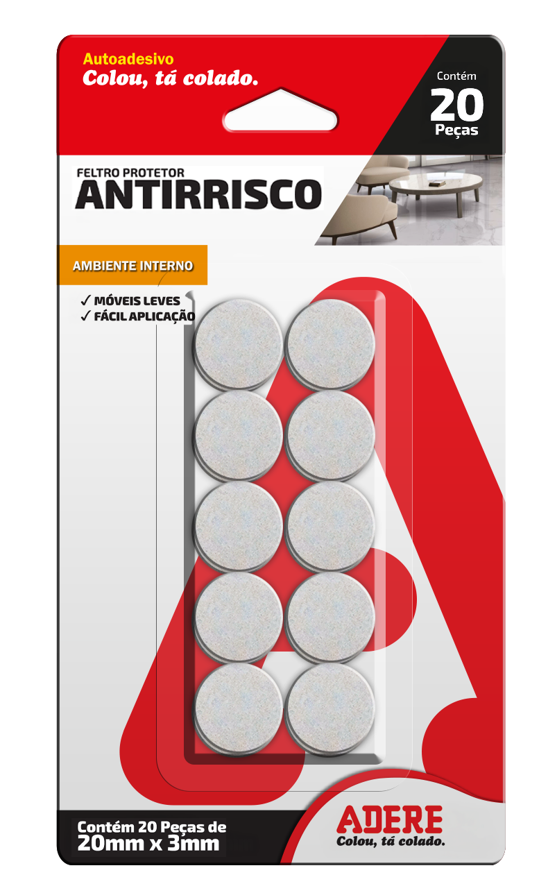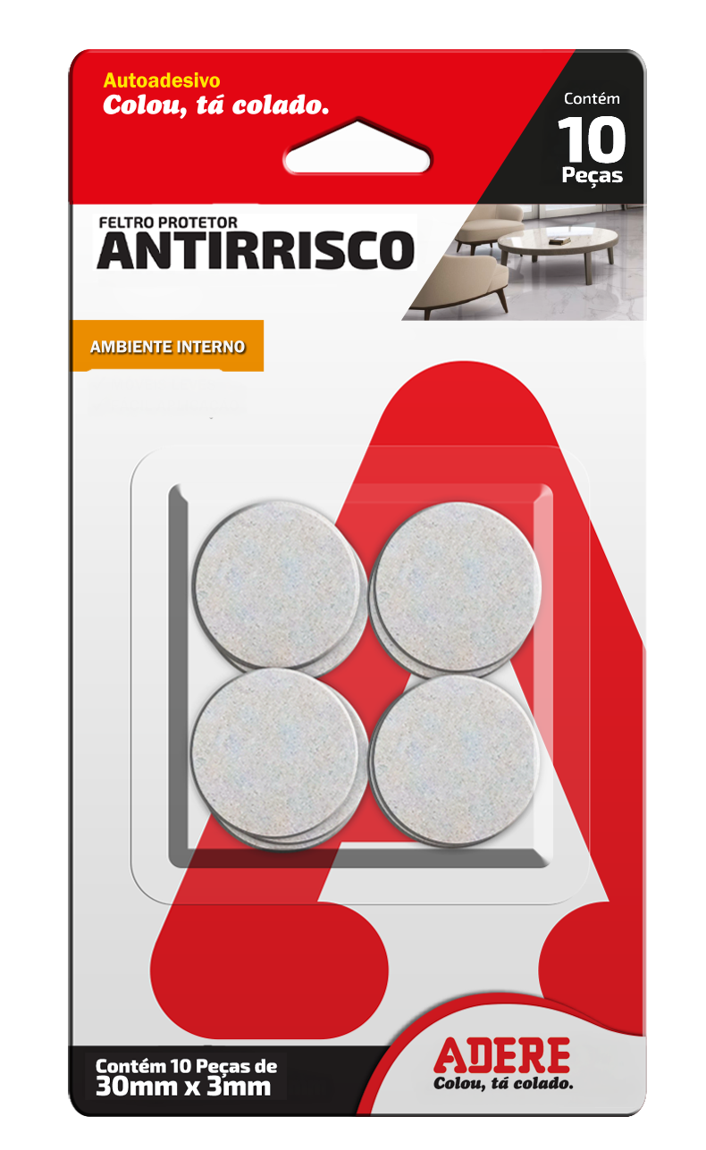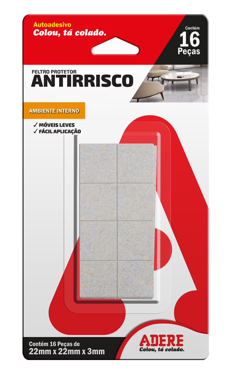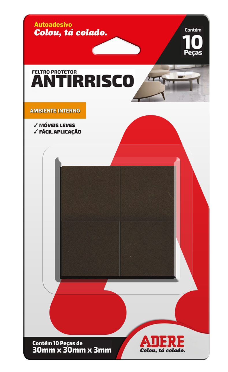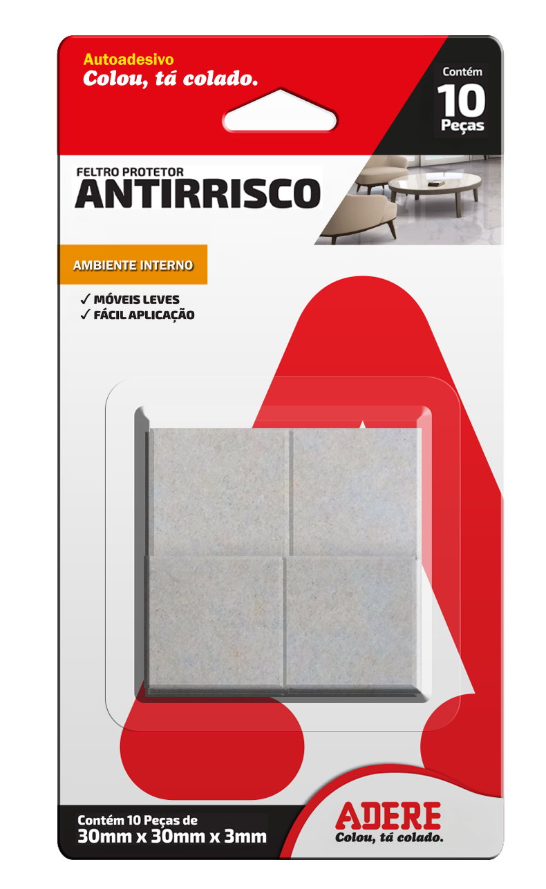 PROTETOR ANTIRRISCO DE FELTRO CLARO QUADRADO ADERE FC300Q 30MMX30MMX3MM