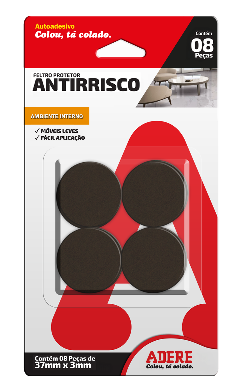 PROTETOR ANTIRRISCO DE FELTRO ESCURO CIRCULAR ADERE FE300C 37MMX3MM