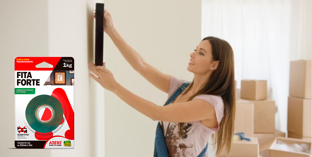 Em inovação constante, a Adere inclui mais um produto em seu portfólio: A Fita Forte de 24mmx02m. O novo produto que contempla a linha de Fitas Dupla Face da empresa, também comporta o maior peso do mercado: 1kg a cada 15cm de fita, oferecendo ao consumidor uma opção mais prática e segura na fixação de objetos pesados.