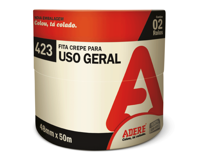 Aplicações gerais de mascaramento: se você busca por uma fita crepe econômica para aplicações de mascaramento em geral, pode escolher a Fita Crepe 423, que garante excelente resultado ao final da pintura.
